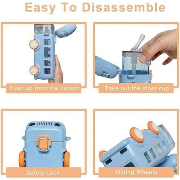 This children’s water bottle adopts a cute cartoon bus shape, which is special and cute, making you unique. It can be used not only as a water cup but also as a toy, with movable wheels at the bottom.